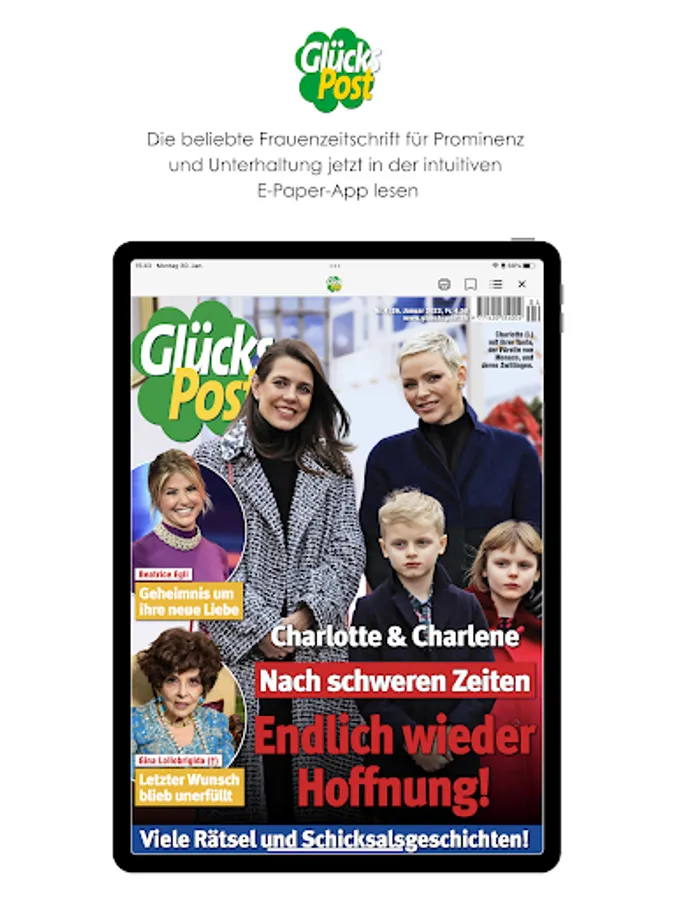 GlücksPost tells the most interesting stories from the royal houses in an entertaining way, looks behind the scenes of film and TV studios, researches fateful stories at home and abroad and introduces people who are in the limelight. GlücksPost also gives specific advice – with up-to-date tips for a better everyday life.