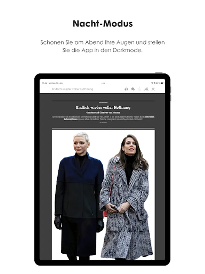 - "Night mode" for an eye-friendly reading experience in the evening