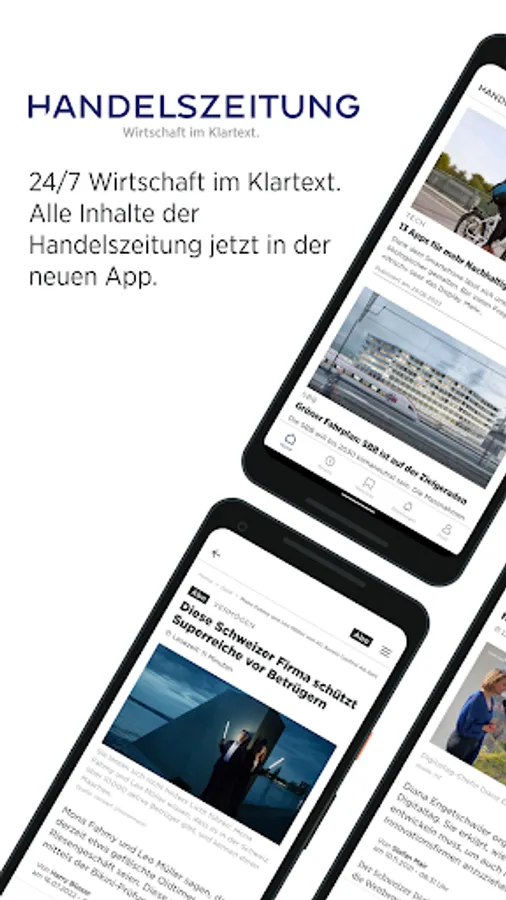 You can now read all the content of the Handelszeitung in the new app and keep track of business events 24/7.