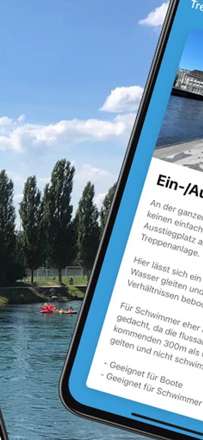 The app informs you about the most important data such as water temperature, height and discharge and offers you further functionalities such as an interactive map, a route planner, alerts and warnings and much more.