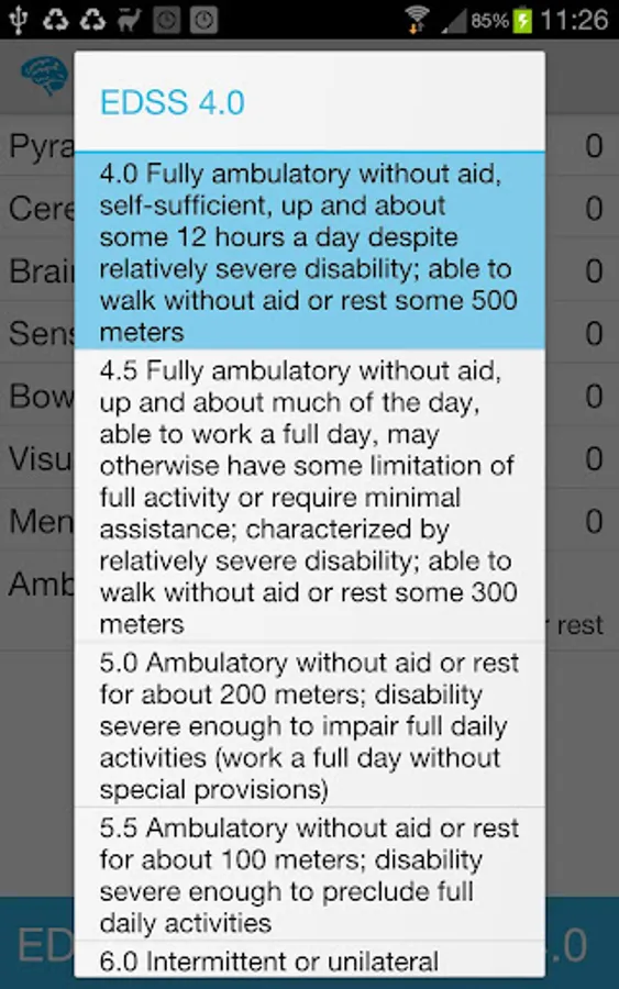 Calculate the Expanded Disability Status Scale (EDSS) score according to the methodology from Kurtzke "Rating neurologic impairment in multiple sclerosis: an expanded disability status scale (EDSS)"; Neurology 1983 Nov; 33(11):1444-52.