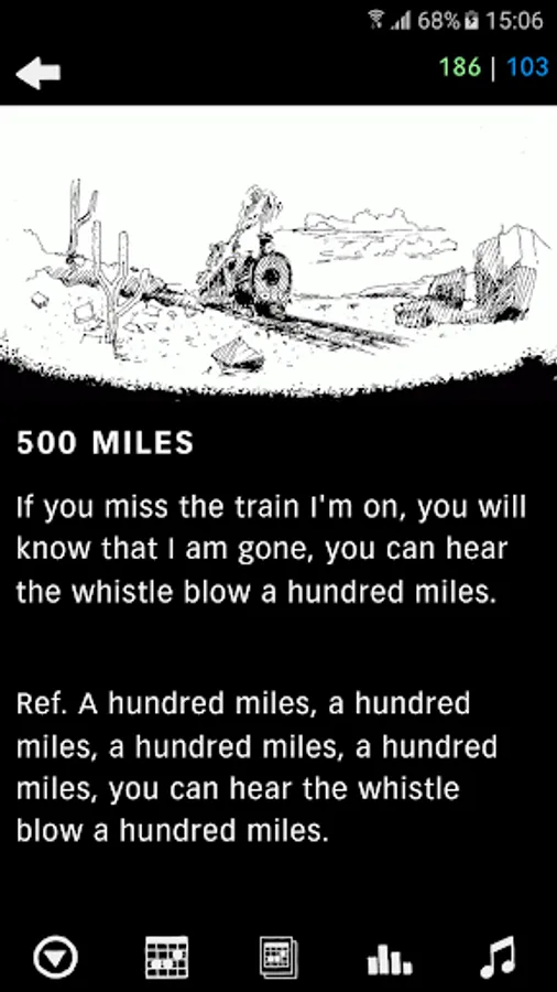 The app gives texts, notes and guitar chords of about 60 well-known songs again. The handles to the chords can be faded separately. In addition, the app plays the melody of the songs and supports you so when singing.