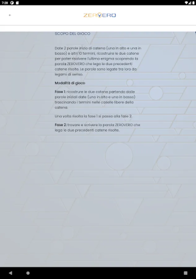 The App is an extension Zerovero eponymous television format of the Swiss Radio and Television of Italian language. It CHAINS CONTEST a game that involves tying words together by way of links in a chain.