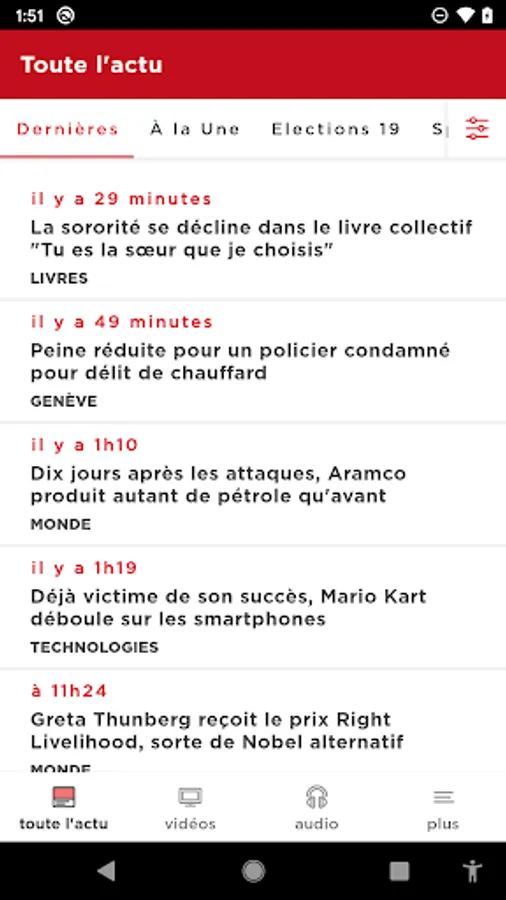 The RTS info app offers 24-hour, full-featured news coverage in Switzerland and around the world. Find our home-made articles, our multimedia complements and the RTS radio and TV news diaries live and on demand. Next to our feed, two video and audio streams are available. Our notifications, which you can customize, will alert you to any important event. Ores usagers, also have a new videoORB, with or without subtit apprécier and a new audio player Customize your navigation and consult geolocated weather information.