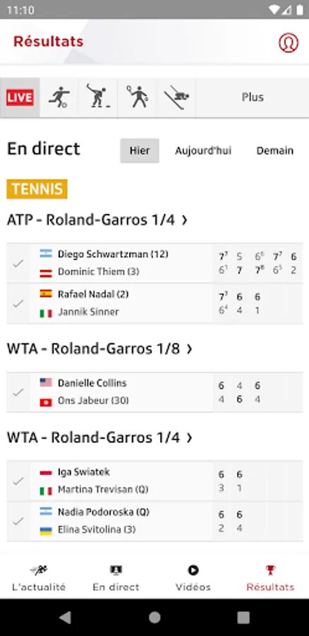 More live sports scores on your favorite subjects (Soccer, Hockey, Tennis, Skiing, F1, Moto, Cycling, Athletics, Basketball ...)