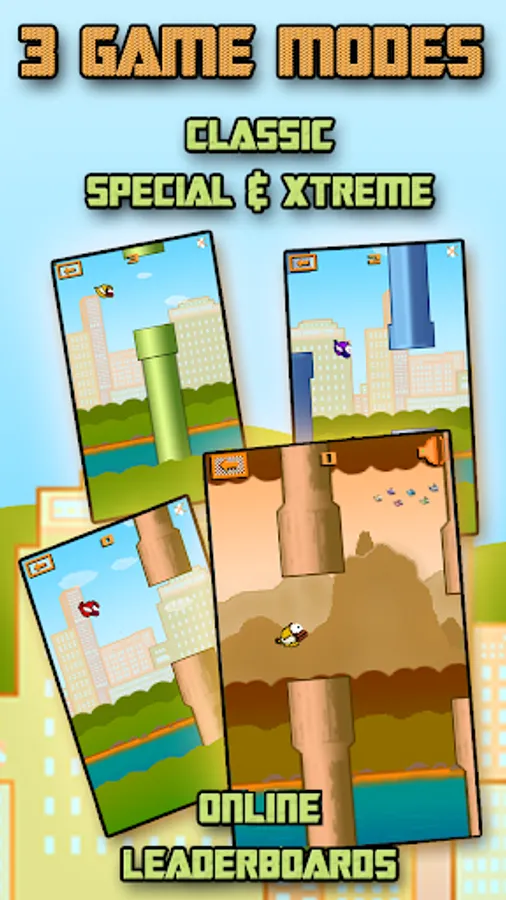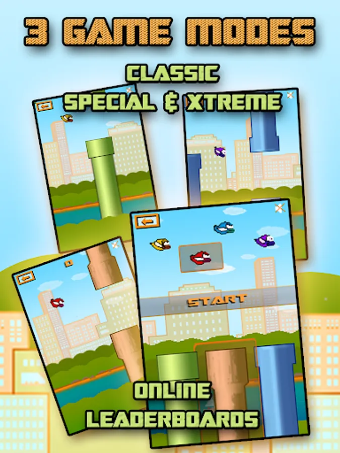 Choose one of 7 different Birds or create your own and fly by tapping the screen.