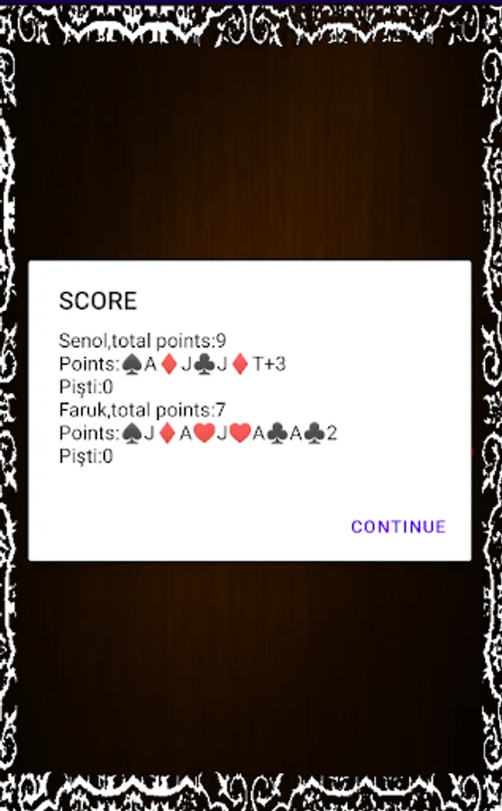 It's about memorizing the cards played and playing the most played cards so that your opponent takes as few tricks as possible. Only the value of a card matters. Example: 2 trumps 2, 9 trumps 9, etc. A jack (J) always trumps. A special trick is the "PISTI": If the table contains only one card and the card played leads to a trick, then this trick is worth 10 points. How the points are counted and how the game is played is described in the help (?).
