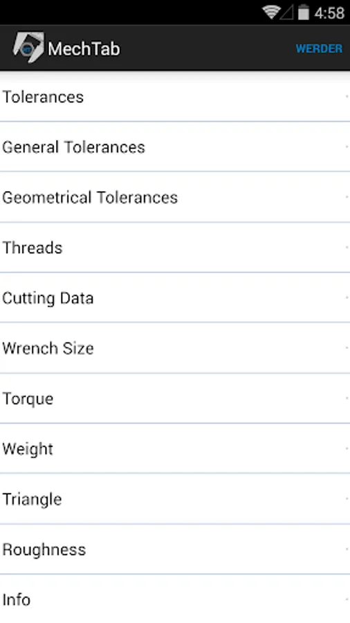 Werder AG introduces the ultimate tool for mechanics. MechTab provides information about ISO-Tolerances, Threads, Cutting Data, Wrench Size and Roughness.