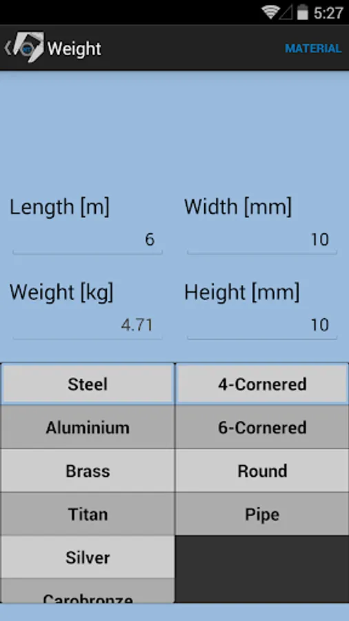 Weight: Calculate the weight of different materials in different profiles. Material list is editable.