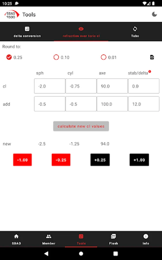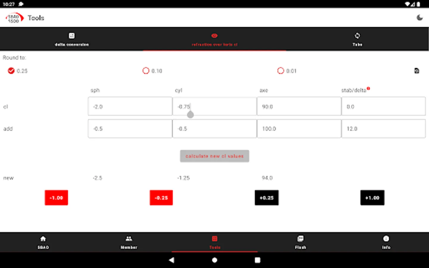The iSBAO application gives you the possibility to access the online list of members of the SBAO (who agreed to data sharing) on your mobile device. A direct call, an email or the display of the address on the map is just a click away. Find all the contact data to your optician/optometrist of choice. Calculation tools for professionals included.