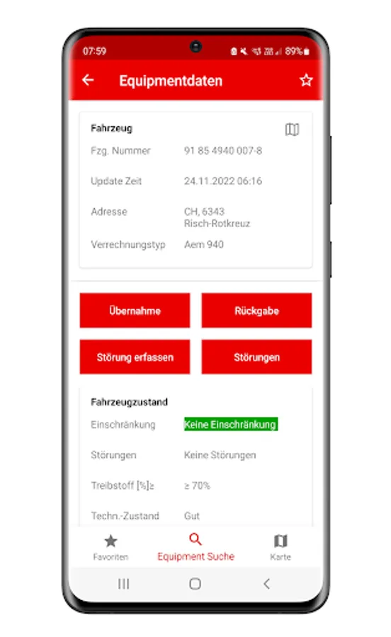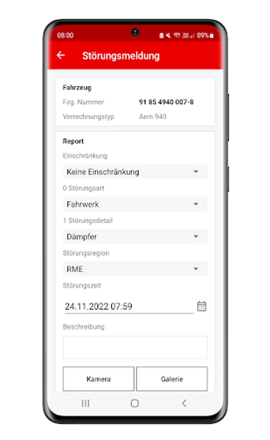 The app allows the vehicle drivers to record the status data of the acceptance and return of the infrastructure vehicles. In addition, fault reports can be sent to the vehicle dispatcher.