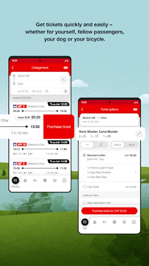 • Buy your ticket for the whole of Switzerland in just two clicks. Your travelcards on your SwissPass are applied.