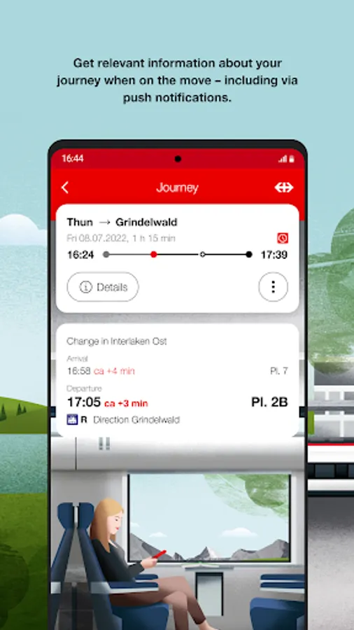 • The app accompanies you from door to door as you travel and you will receive information about delays, disruption and interchange times via push notification.