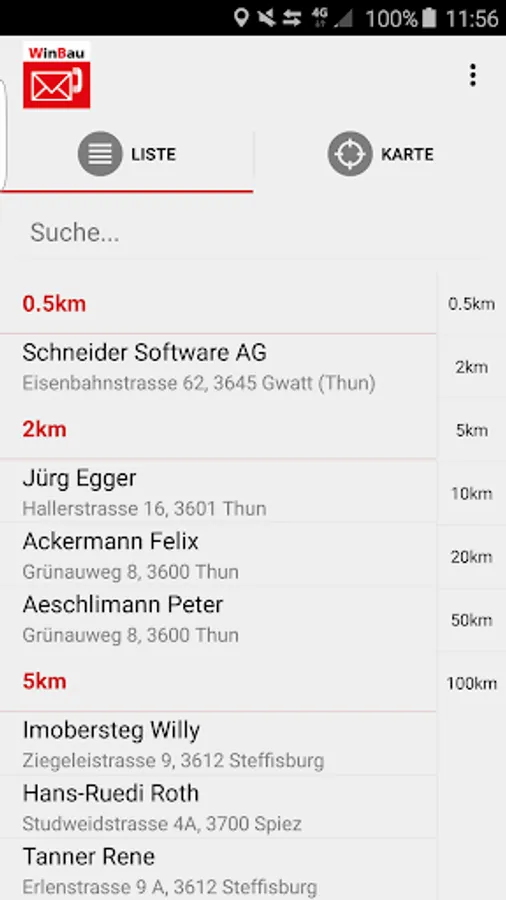 Download your captured with WINBAU addresses on your smartphone. To quickly find telephone numbers, contact persons and addresses. The addresses can be displayed on a map.