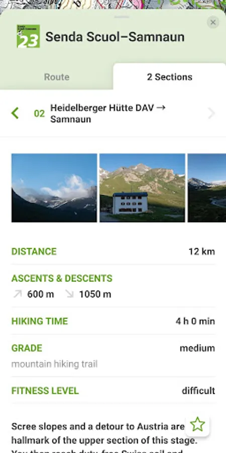 - download and store tours you designed, including elevation profile, hiking time, distance and altitudes (separately and easily)