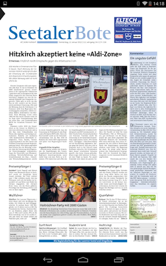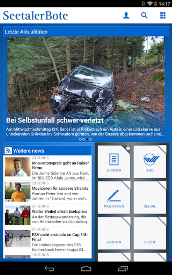 The Seetal messenger brings you the news from the Valley and the canton of Lucerne on their mobile device. At home and on the road you are using the self-service app at any time up to date.