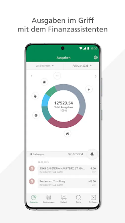 The financial assistant automatically categorizes your expenses, giving you insight into your spending behavior. A budget that is also created automatically helps you to plan your future expenses. Define your own categories, take your credit card payments into account or expand your account selection (entire household).