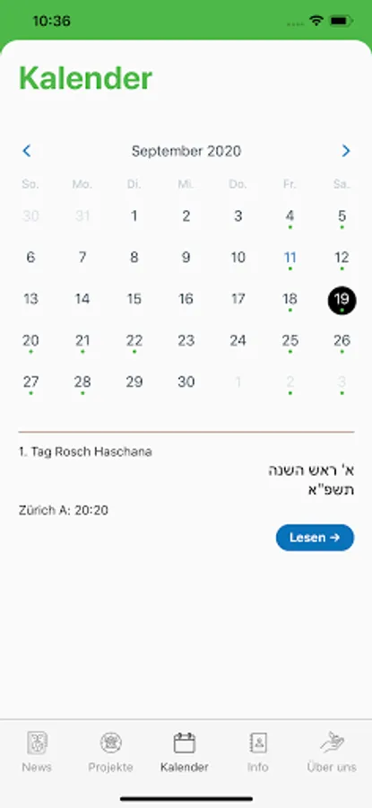 The app includes a calendar for Jewish and other holidays as well as the entry and exit times of Shabbat and the Jewish holidays and fasting days.