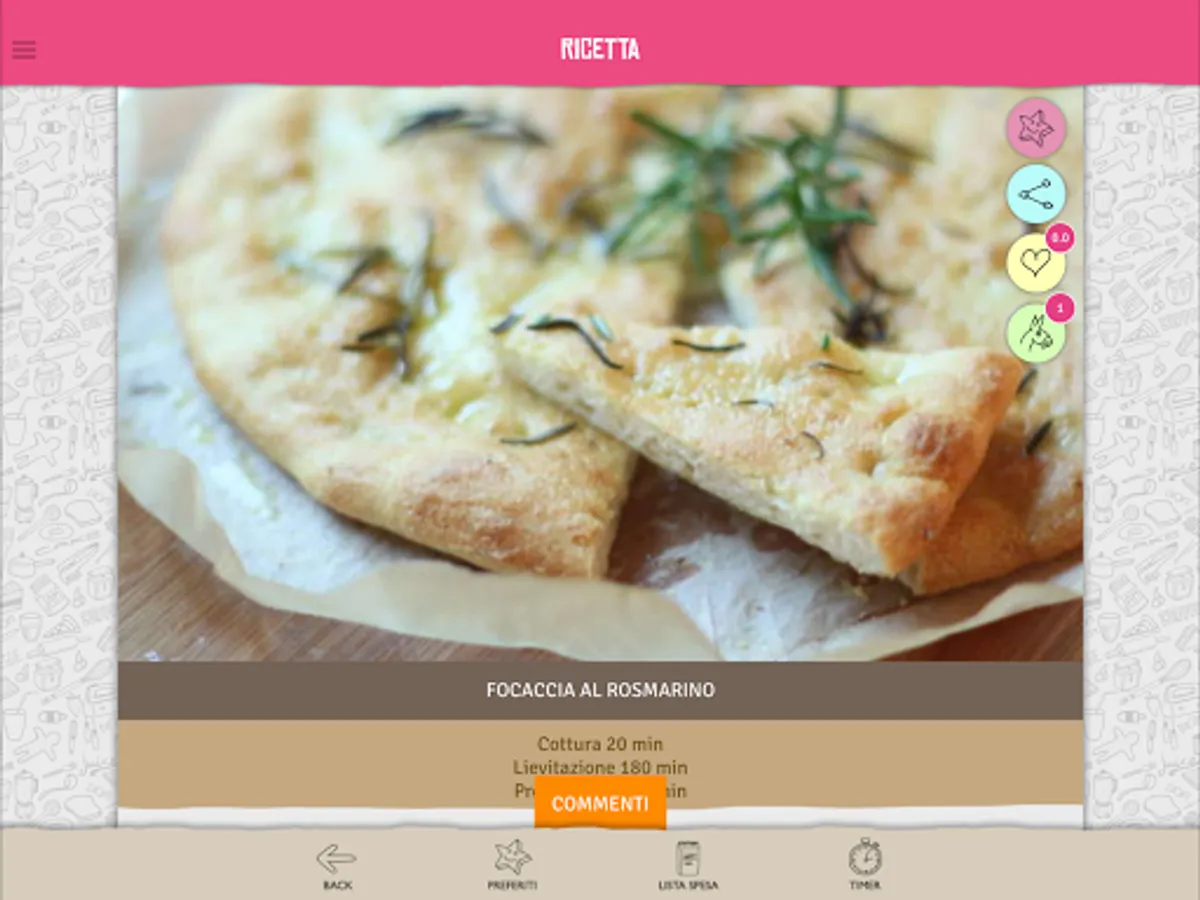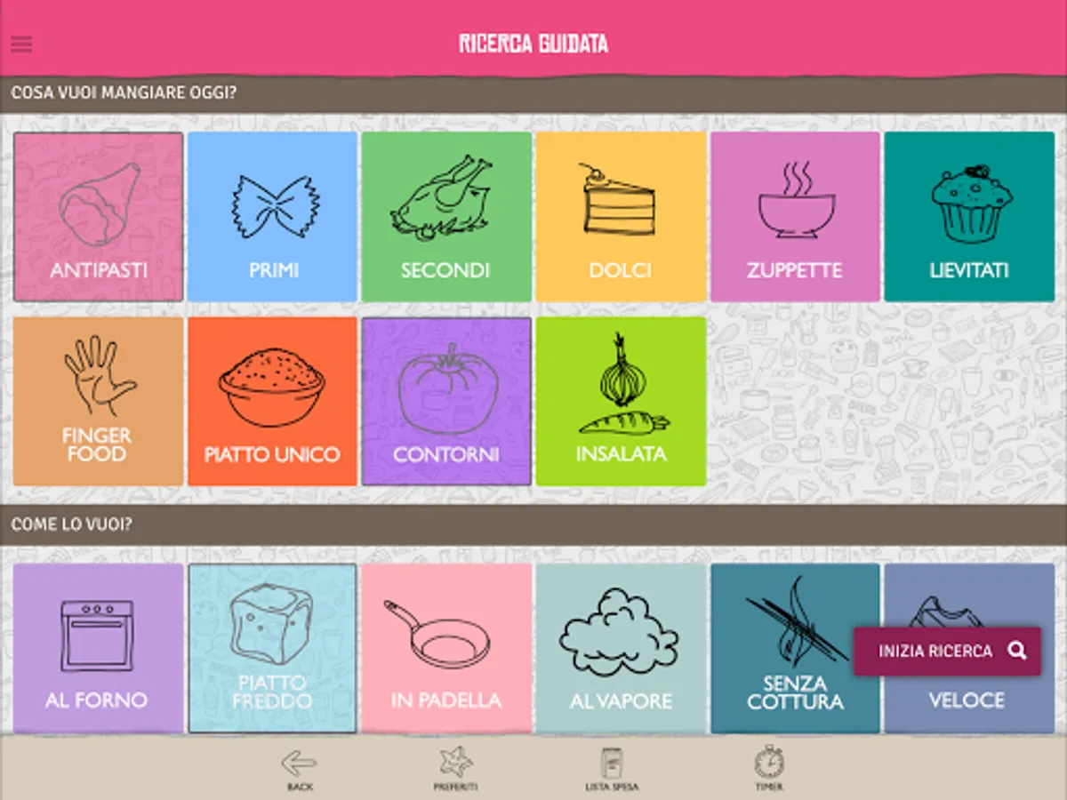 With this application you can see the recipes at any time, whether you're in the mountains or at the beach, outdoors or indoors or dispersed in some valley even without an active connection. If you are one of those people who have three things in the refrigerator and do not know how to combine them, well 'with the "what's in your refrigerator," you might find a solution (you :-)). Or with the guided search you can choose the type of dish, seasonal, food preference, color and more. But still! If you were of those who go to the supermarket and forget half the things or that they never know where they put the timer functions "shopping list" and "timer" will do for you. And if a recipe would really like it to the point of having to shout the world, well, 'away with sharing Twitter, Facebook and e-mail address! I have not yet convinced you?