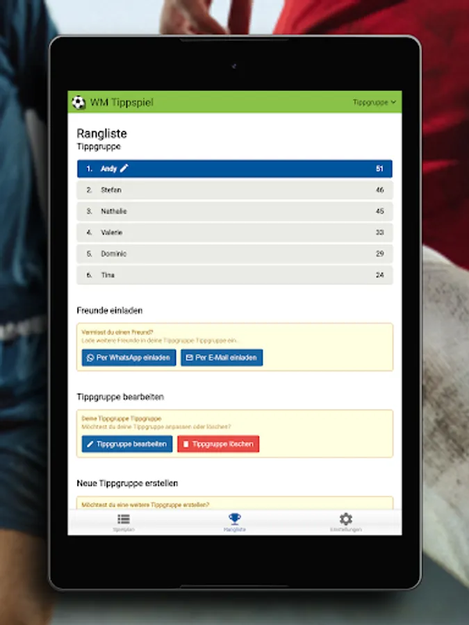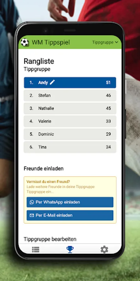 Create your own betting groups and invite your friends, work colleagues or the neighborhood.