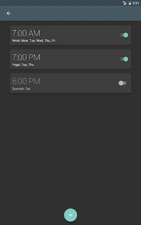 - Recurring alarms on selected days of the week