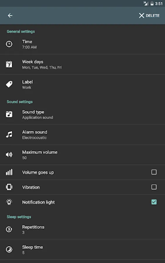 - Define precisely repetitions and snooze time