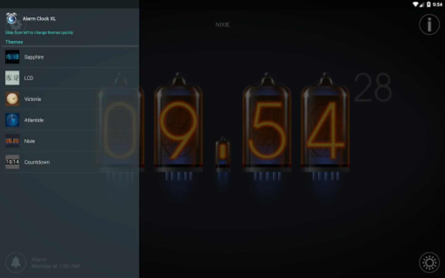 - Brightness fades out automatically for the night