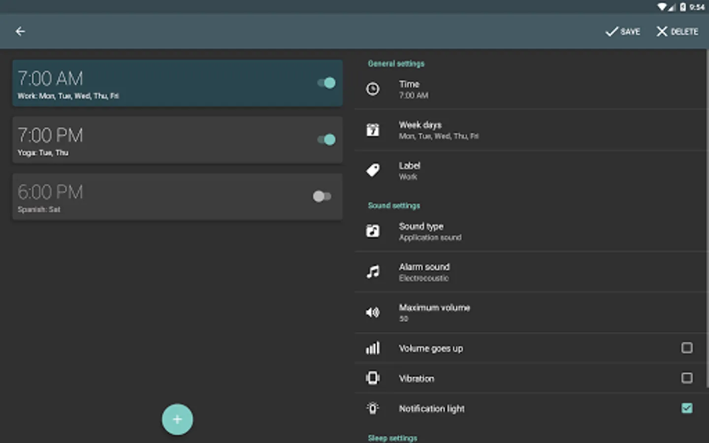 - Multiple alarms with custom labels