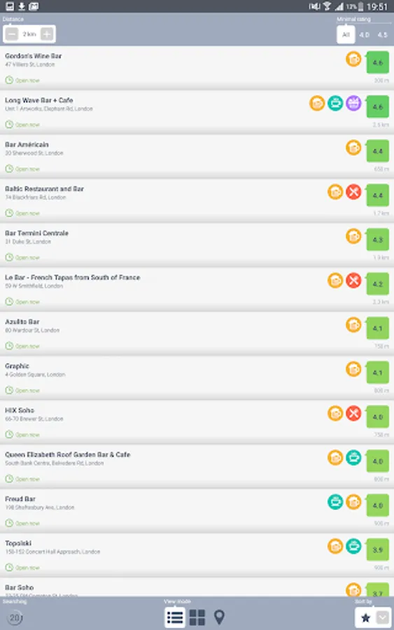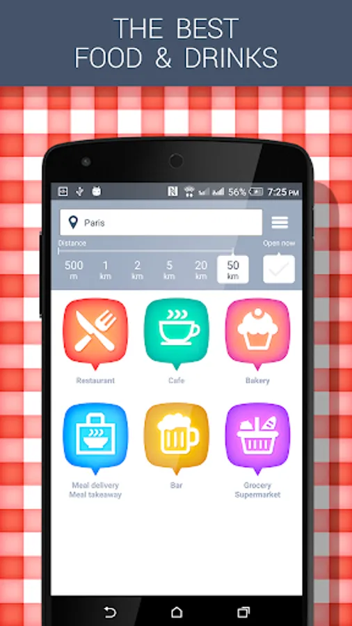 See all the restaurants and cafes, but also bars and bakeries. Meal delivery and supermarkets can be found too!