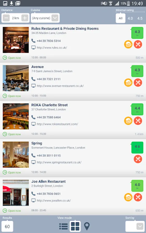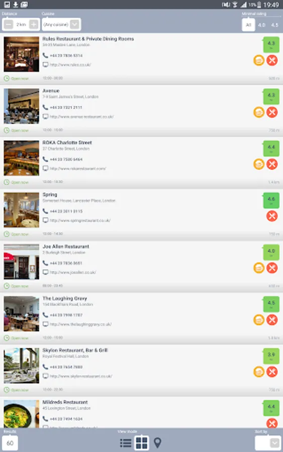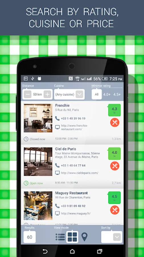 Search quickly by ratings, distance and type of cuisine. Search around of you or prepare your future trips !