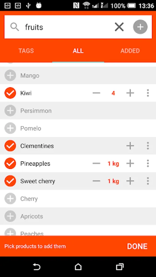 Use prepared lists so you can shop again for the same items with minimal effort every week. Get access to lots of predefined items for food or beverages with beautiful icons for each category.