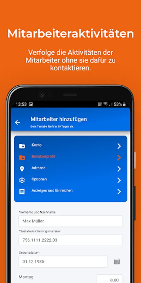 Reporting of working hours has never been easier. With our templating function you can easily create timetable templates that your employees can use to easily report their working hours and breaks on a daily basis.