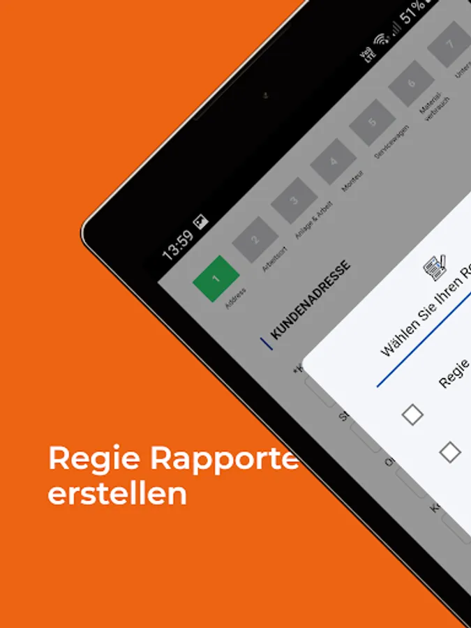 Without much planning, all services performed over the course of a day can be reported to the clients quickly and easily with the 'Regie Report' functionality, immediately after they have been carried out. You can record working hours, material consumption, spare parts and additional products.