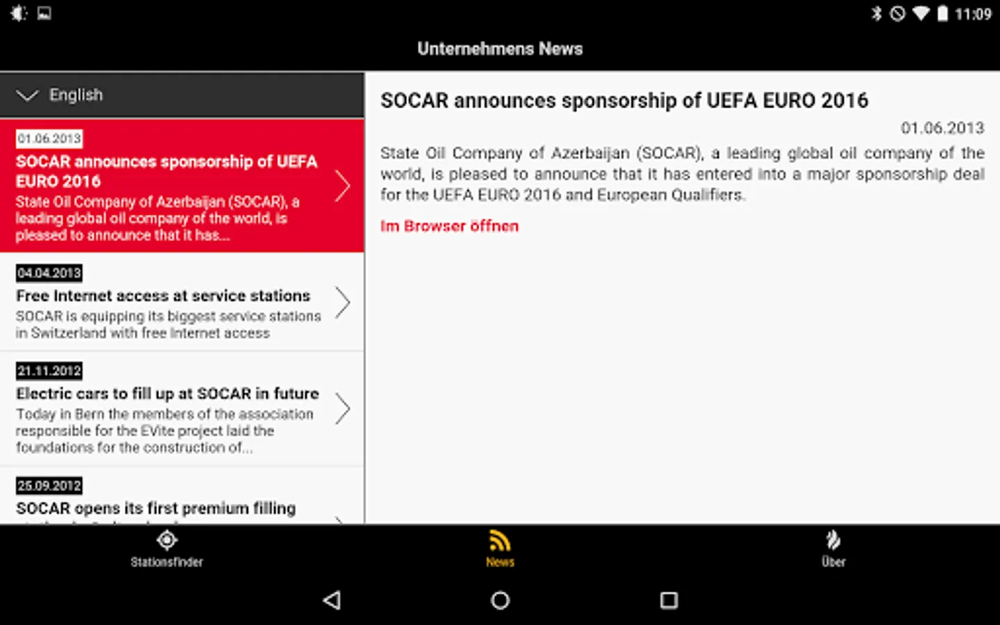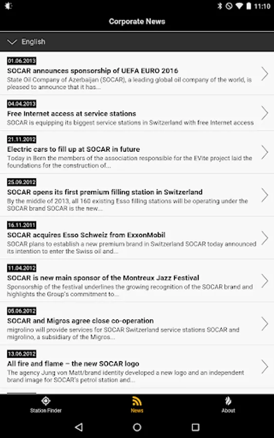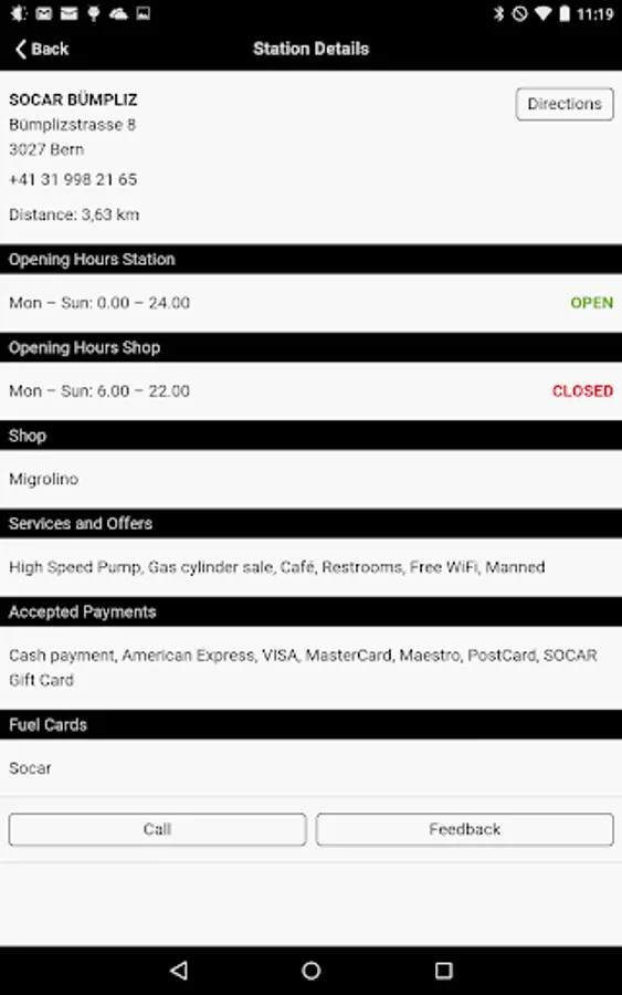 You can also search/filter stations offering special fuels, restrooms, acceptance of cards payment, and other station information. After selecting a retail site or shop, the SOCAR Station Finder allows transferring the coordinates to the navigation software on your phone to show you the shortest route. SOCAR Station Finder also shows the latest SOCAR news and SOCAR product promotions. It does not provide information on gas prices.