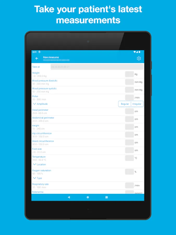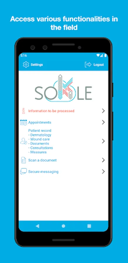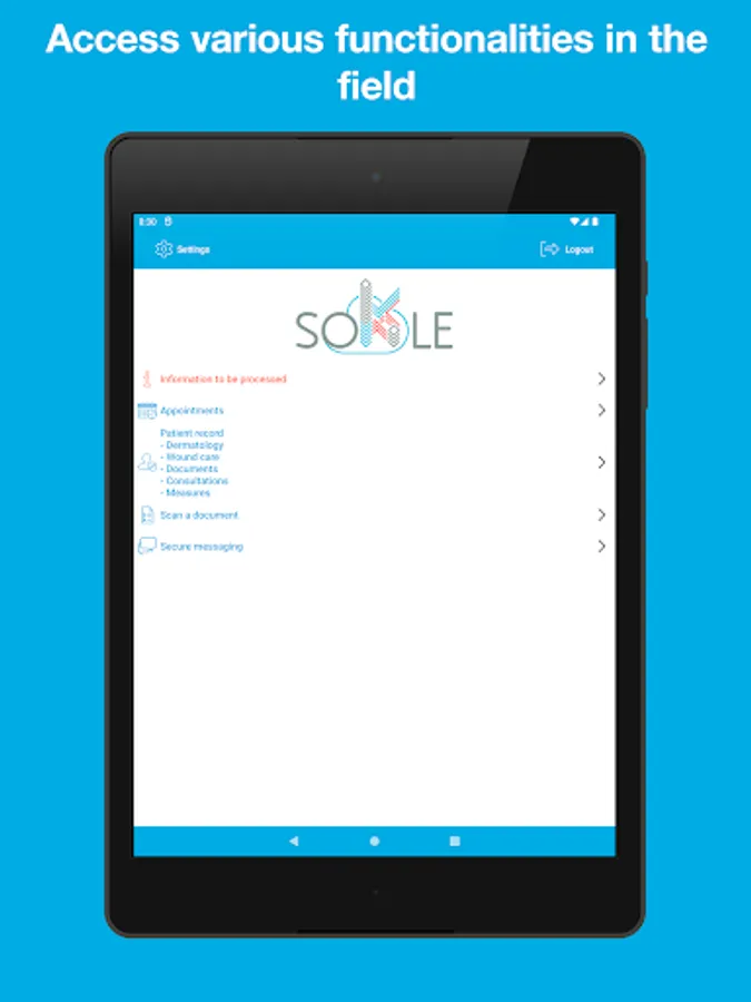 The companion app to your Sokle medical record software, for caregivers. Use the app as a complement to your office consultation to save time or to access your patient's vital information when you are at the patient's home.