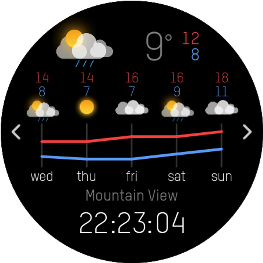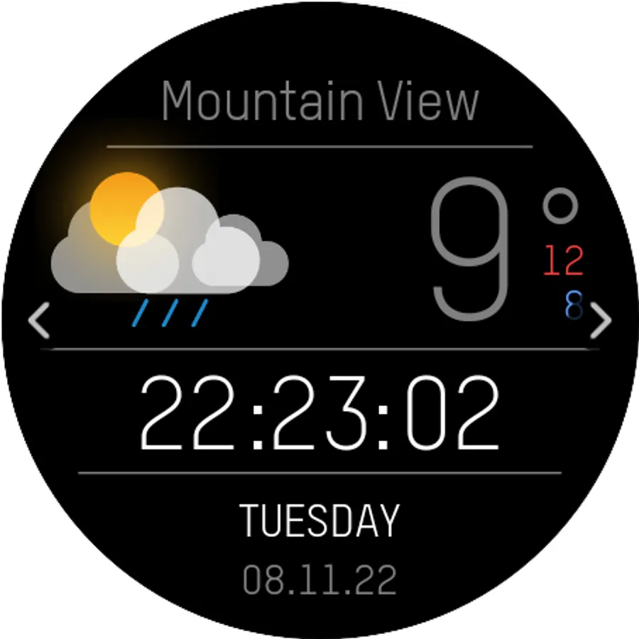 Don’t miss our powerful digital watch face focusing on providing beautiful weather data. This version will definitely catch the eye of every onlooker. Use any of the 4 different dials to collect the most essential information about weather.