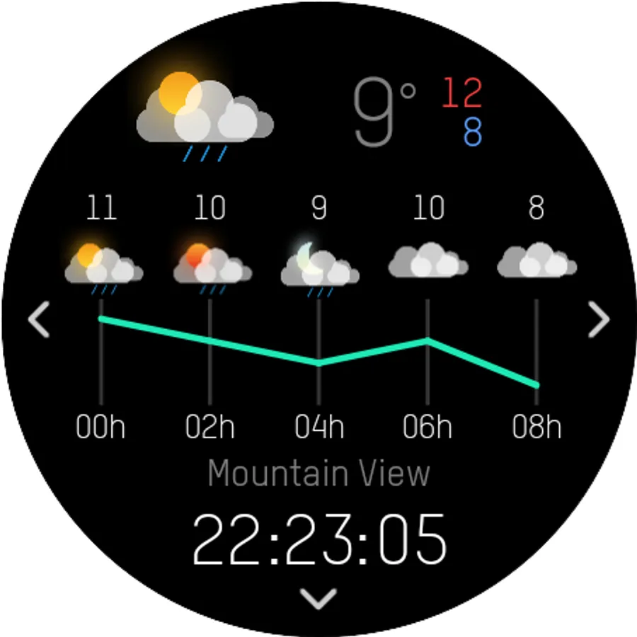 2. Second dial: graph focuses on the forecast for the upcoming hours.