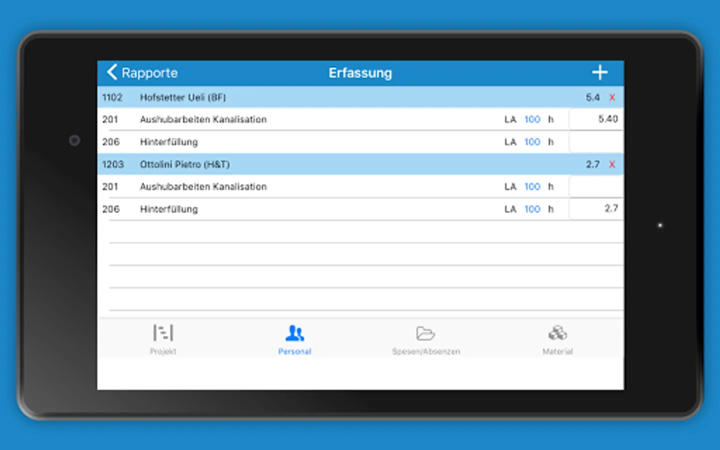 Mobile recording of services directly on the construction site. Especially for Swiss companies in the building trades.