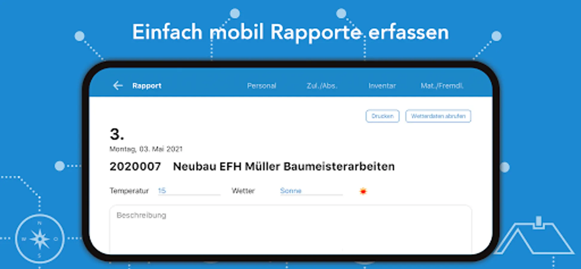 The daily report is structured analogously to the paper form and can therefore be operated intuitively by anyone.