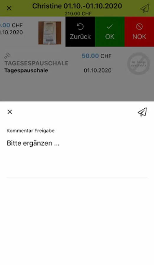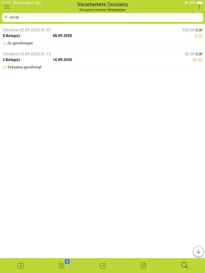 Simply take a photo of the receipt, add information on the origin of the receipt and the issue is recorded and can now be saved in a dossier or forwarded directly to the superior for review. The supervisor receives a task to check the submitted dossiers of his employees and can comfortably approve, reject or return the expenses for revision.