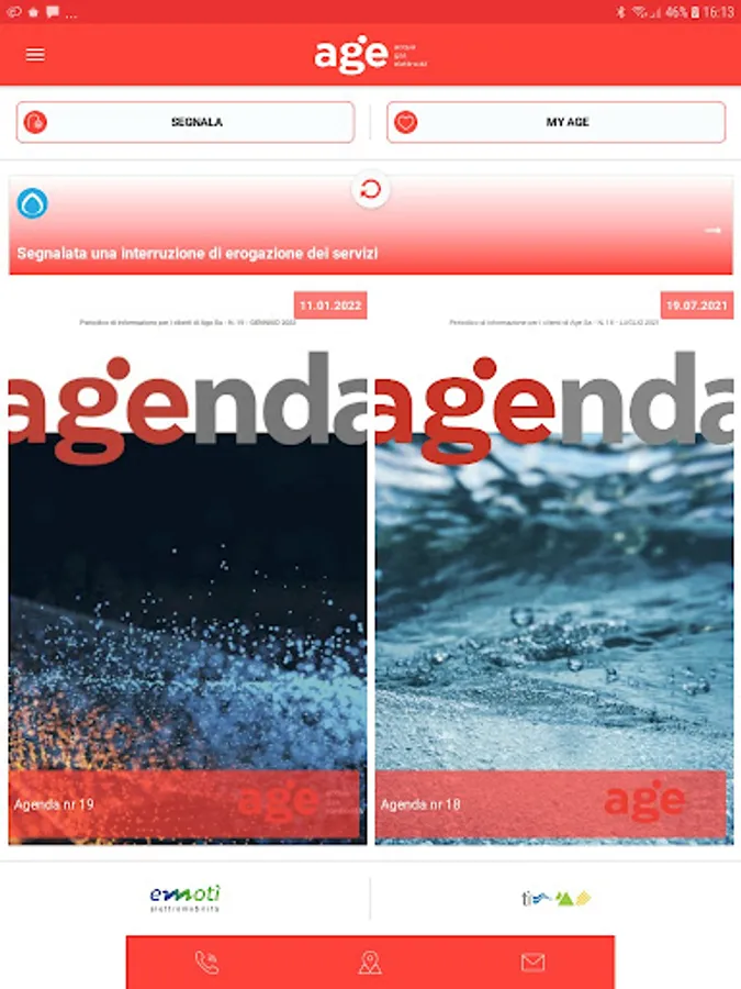 The application reports in real time notifications for interruptions in the supply of electricity, drinking water and natural gas, news and updates regarding the activities of AGE SA.