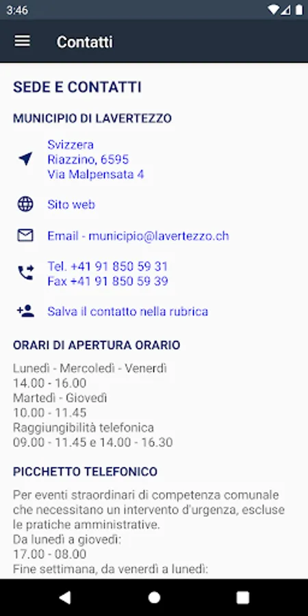 The Lavertezzo app allows you to consult the municipal register, documents and news, as well as contacts.