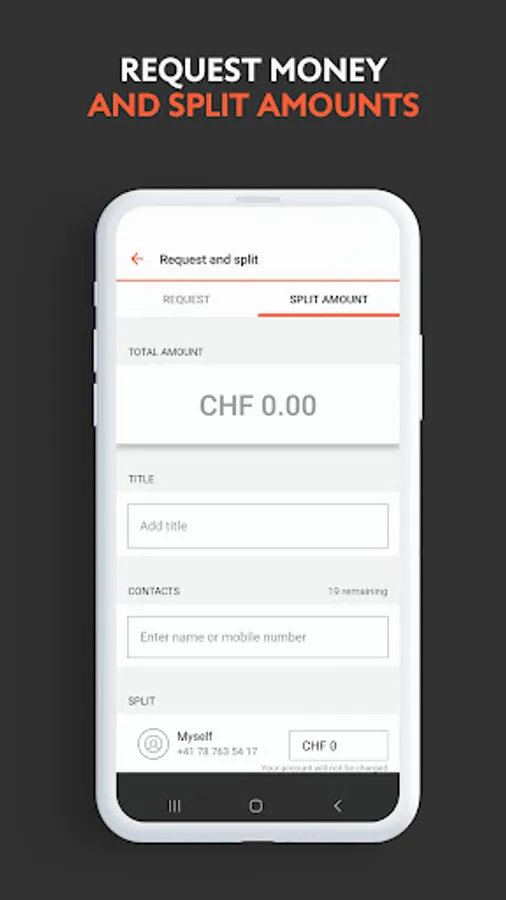 With the “Send” feature, you can send money to your contacts as easy as that. Use the “Request and share” feature to request money or share a bill. Just get the recipients’ mobile phone number and wait for them to download the TWINT application, if they have not already done so.