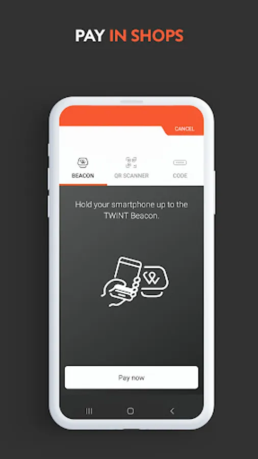 You can pay for your purchases in shops using the QR code or via Bluetooth. Just open the Swissquote TWINT app and scan the QR code with your smartphone camera or hold your smartphone near the Bluetooth device.