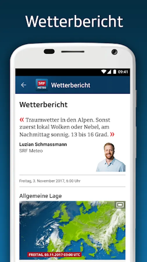 Find out quickly and easily about the weather in Switzerland and around the world with the SRF Meteo app. Save your favorite places as favorites and always keep an eye on the weather. The Meteo precipitation radar shows you the development of the last and the coming hour and in the 48h model. During the winter months you will find the snow weather map with current snow depth, new snow depth and avalanche danger in the SRF Meteo app, published by the Institute for Snow and Avalanche Research SLF. With the SRF Meteo editorial team's weather report updated three times a day, you are always up to date on the weather forecast for Switzerland. You can find new and exciting things about the weather every day in the Meteo-Stories. With over 40 webcams distributed throughout Switzerland, you can get an idea of the current weather. In the event of extreme weather in your preferred Swiss locations, you will be warned via push notifications and directly in the app using the weather warnings.