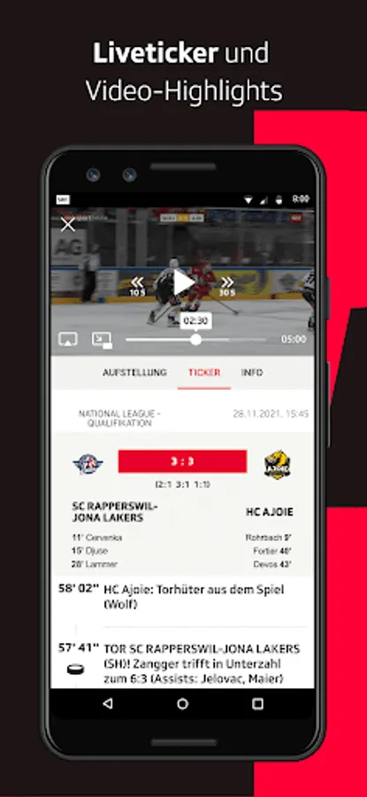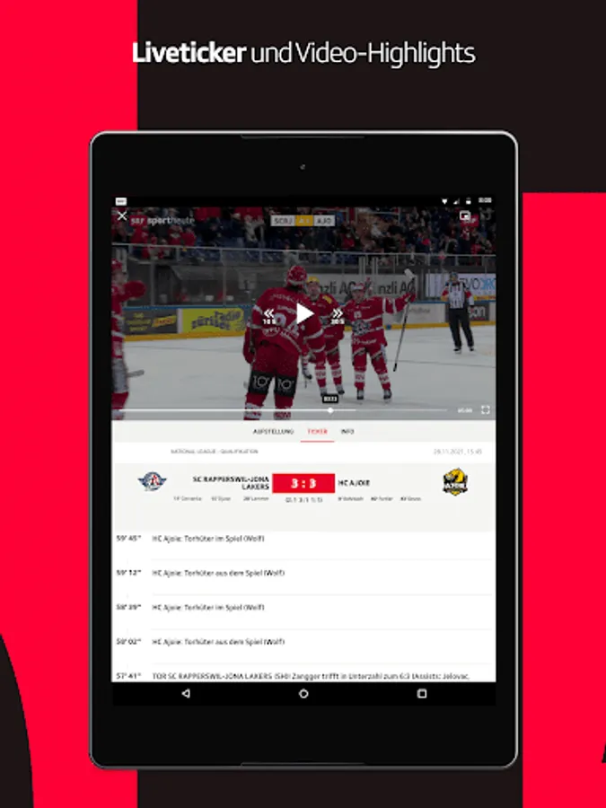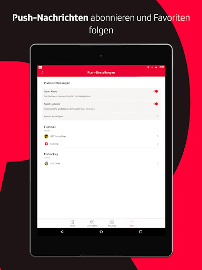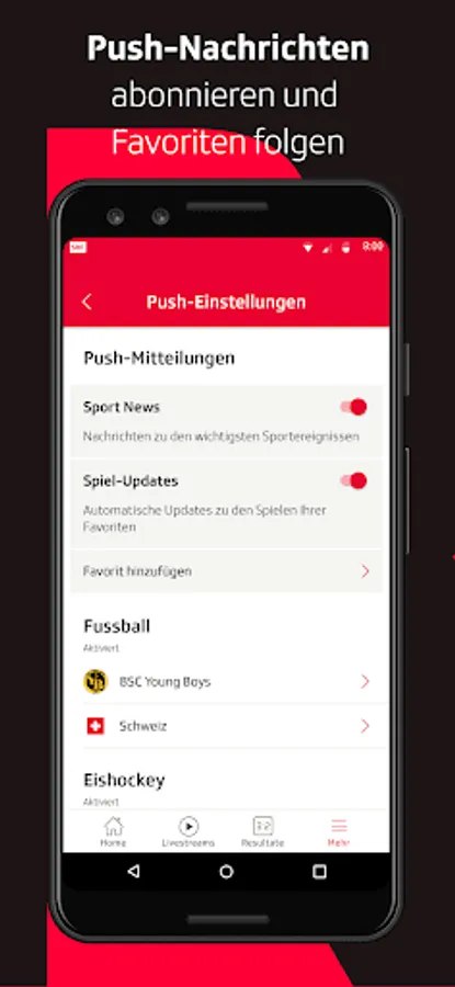 • Results center with a unique breadth: From hockey NLA to football 1st league to volleyball NLA women you will find all important sports here