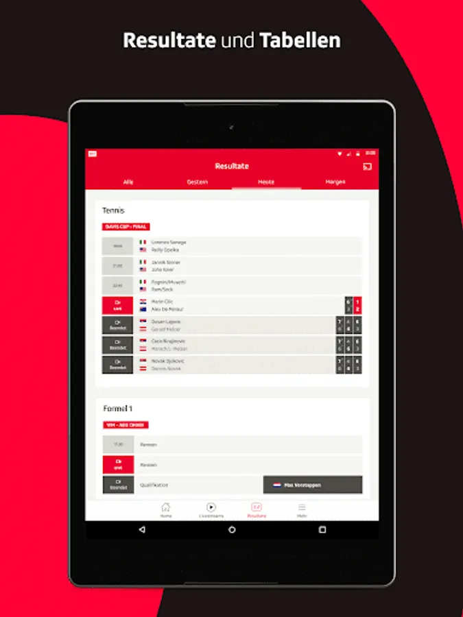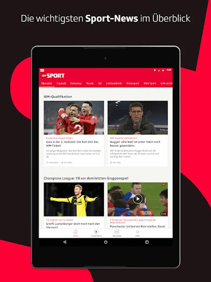Whether football, ice hockey, skiing, tennis, cycling, alpine skiing or Formula 1. With the SRF Sport App you are there live in all sports. We report on Swiss athletes and international sports highlights. All sports news, results and videos for the Super League, Champions League, Bundesliga and Swiss Cup in real time.