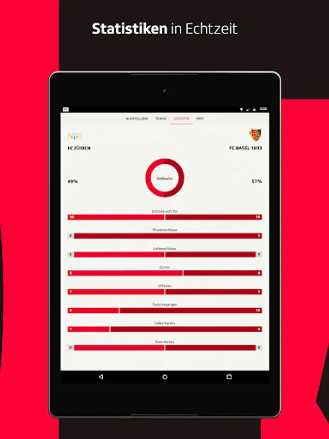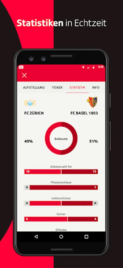 • Live center with live stream (if available), live ticker and statistics