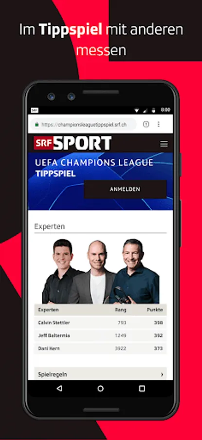 For feedback or problems with the SRF Sport App, please contact SRF Customer Service via http://srf.ch/kontakt or by phone (0848 80 80 80).