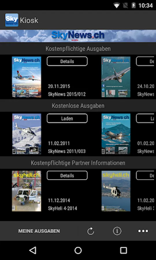 The app is organized as a kiosk system, offering free and paid information such as SkyNews.ch on. In the partner area information from the flight envelope for the user are provided. The information is constantly being expanded.